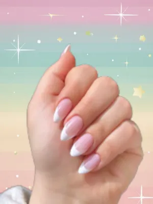 French tip bubble bath nails combine a sheer blush base with crisp white tips. The modern twist feels softer and more romantic than the classic French manicure.