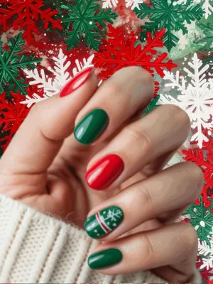Yes, red and green combos are classic for Christmas nails. Use subtle patterns or accents to keep it chic and balanced.