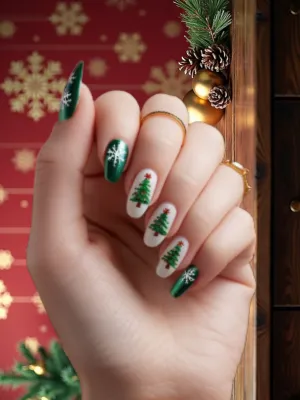 Ideal for ages 23–48 who love cozy and creative winter nail styles in green christmas nail designs.