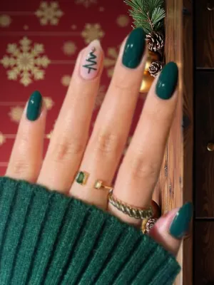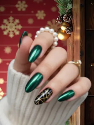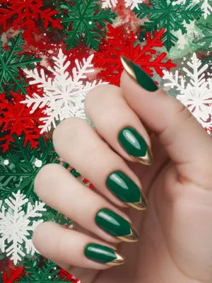 These nails combine elegant green shades with minimal accents like gold lines or subtle sparkle, creating a refined and timeless holiday look.