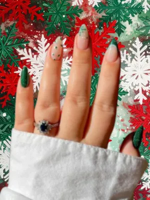 Suitable for ages 15–26 who enjoy playful and themed nail art styles in christmas nail green designs.