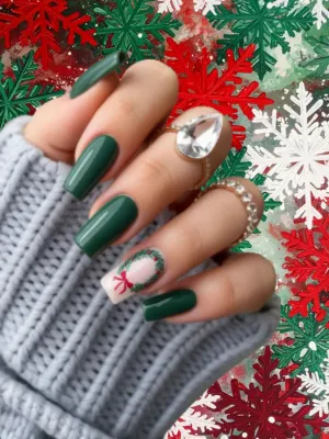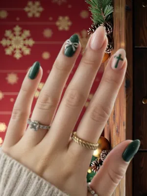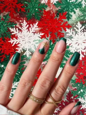 Best for ages 28–50 who prefer simple and elegant nail designs in green christmas nail designs.