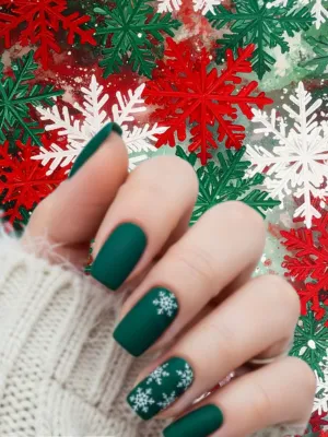Matte green nails offer a soft, velvety finish that feels elegant and modern. Paired with subtle accents, they create a chic and understated holiday vibe.
