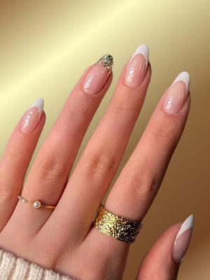 Classic French tips get a winter makeover with icy silver lines or soft white edges, adding timeless charm.