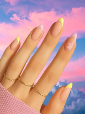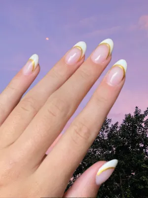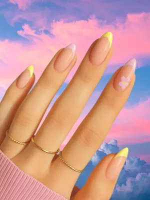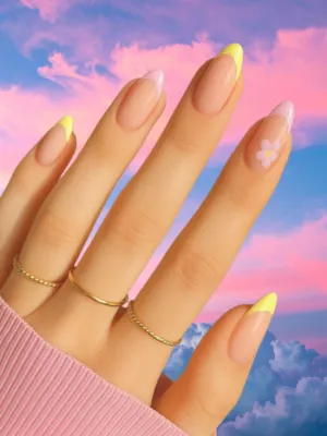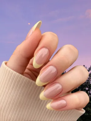 Vibrant yellow tips over a sheer nude base bring a sunny, cheerful vibe to your manicure—simple, bold, and happy.