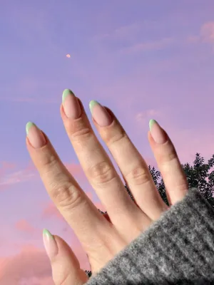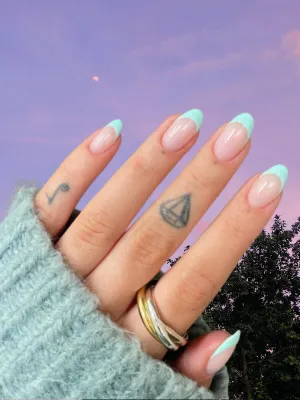 Soft mint tips on a sheer pink or nude base give a crisp, cool look that feels refreshing and calm.