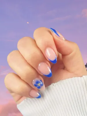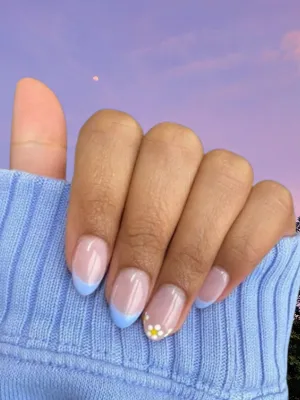 Bright French tips paired with tiny floral art near the cuticle bring garden freshness and playfulness to your nails.