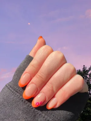 Vivid pink and bright orange tips create a fiery combo—spicy, modern, and selfie-approved.