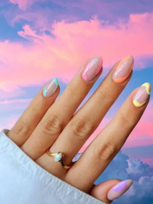 Soft pastel tips that fade from one color to another—blues to purples, pinks to peaches—for a dreamy ombré look.