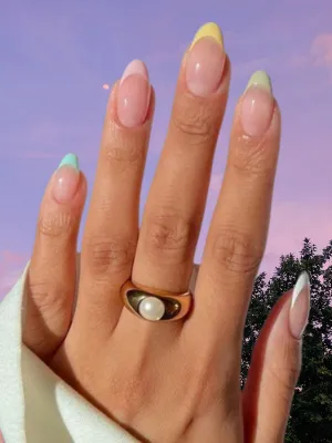 Classic nude base with various pastel or bright tips adds fun contrast—chic and endlessly wearable.
