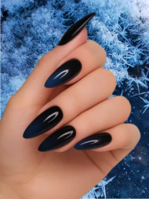 Black stiletto nails combine sharp pointed tips with jet-black polish, giving a fierce, dramatic winter look that feels bold and confident.