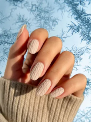 Cozy sweater pattern nails mimic knitted textures in dark tones, adding warmth and charm to winter manicures.