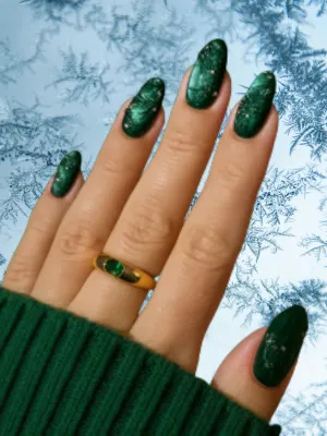Emerald green dark winter nails glow with rich jewel tones, offering a luxurious and festive feel perfect for holiday evenings.