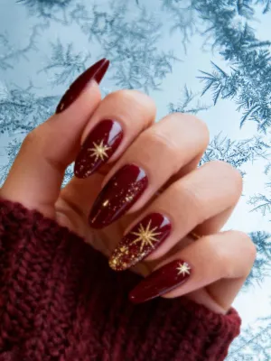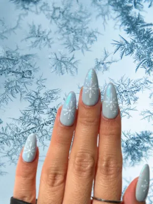 Add snowflakes, gold foil, chrome powder, glitter tips, or tiny star details for a holiday-ready glow.