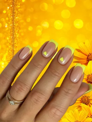 Tiny yellow hearts added to French tips create a romantic, playful look.