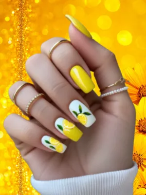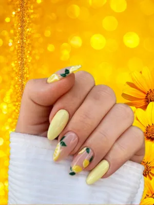 This design features juicy lemon-yellow tones with glossy finishes that feel refreshing and playful, inspired by chilled lemonade on hot summer days.