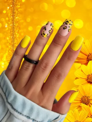 26.Yellow Nails with Animal Print Accents