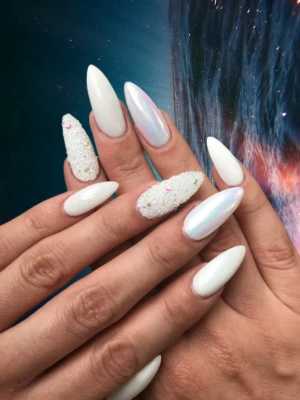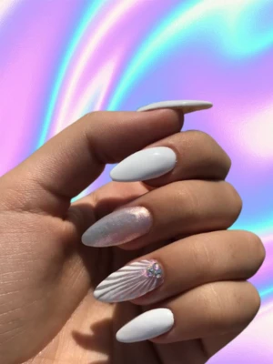 A creamy white base with pearl shimmer and soft silver accents gives ethereal, ocean foam vibes. Understated yet divine.