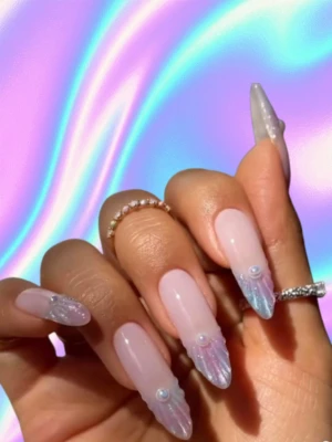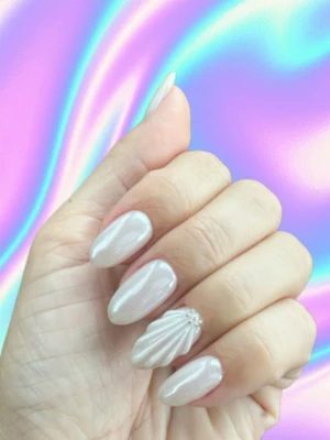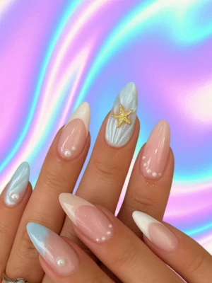 A french tip reimagined with a pearly finish and oceanic twist—clean lines, luxe vibes.