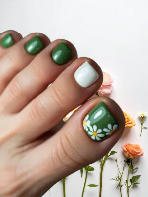 Fresh green shades inspired by nature bring a lively and refreshing look. These toe nail designs for spring reflect growth and seasonal beauty.