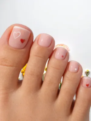 Heart and kiss patterns add a romantic and playful touch. These cute spring toe nail designs are perfect for expressing love vibes.